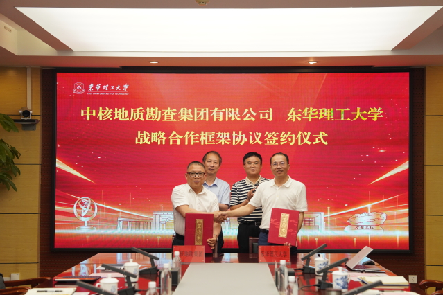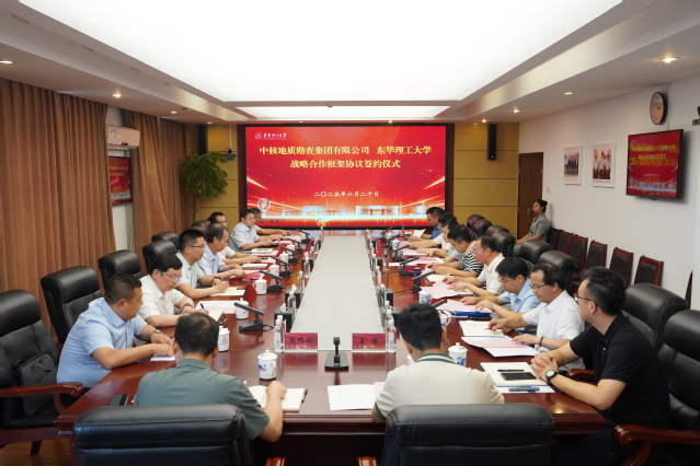 6月20日,九游电子娱乐_九游体育(中国)与中核地质勘查集团有限公司(以下简称“中核地勘集团”)战略合作框架协议签约仪式在九游电子娱乐_九游体育(中国)举行。中核地勘集团党委书记、董事长谭德峰,副总经理陈哲,中核大地生态科技有限公司党委书记、总经理黎伟,中核南方地勘中心主任、党委副书记陈志平,九游电子娱乐_九游体育(中国)党委书记张福庆,党委常委、副校长杨波出席。