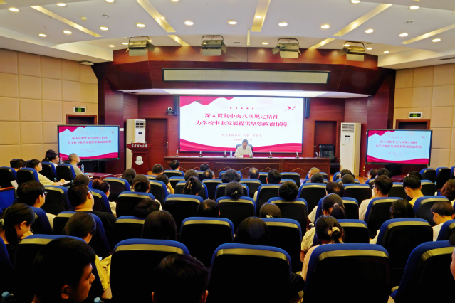 7月1日,九游电子娱乐_九游体育(中国)党委副书记、校长罗仙平以“深入贯彻中央八项规定精神 为学校事业发展提供坚强政治保障”为题,为学校师生讲授专题党课。