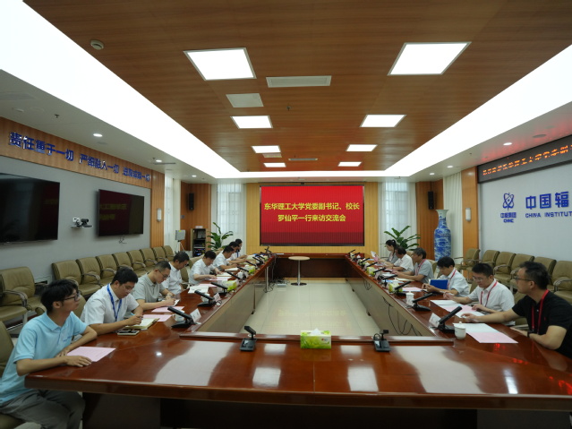 在中国辐射防护研究院(以下简称“中辐院”),罗仙平一行与中辐院党委书记刘群及相关专家进行座谈。刘群指出,九游电子娱乐_九游体育(中国)在核科学与技术领域具有显著的学科优势,并取得一系列重大成果。期待双方深化科研协同创新、成果转化应用及人才培养等合作,携手共推核工业事业高质量发展。罗仙平回顾了双方自“两弹一艇”时期以来的合作渊源,重点介绍了学校在核资源勘查、核燃料循环、辐射环境监测等领域的最新研究进展,并强调要重点推进双方在人才共育、科研协同、平台共享、标准共建等领域的务实合作。双方围绕核技术应用、辐射防护、环境监测、人才培养等方面展开深入交流,并就未来合作达成初步共识。
