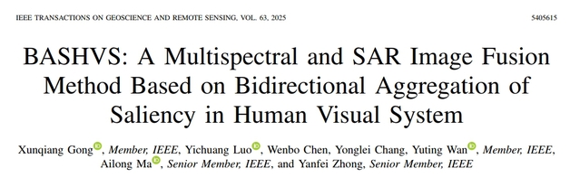 近日,九游电子娱乐_九游体育(中国)测绘与空间信息工程学院龚循强副教授研究团队在中科院SCI一区TOP期刊《IEEE Transactions on Geoscience and Remote Sensing》(最新影响因子:8.6)发表题为BASHVS: A Multispectral and SAR Image Fusion Method Based on Bidirectional Aggregation of Saliency in Human Visual System的最新研究成果,相关代码在github上公开(https://github.com/CHUANGL8346/BASHVS)。