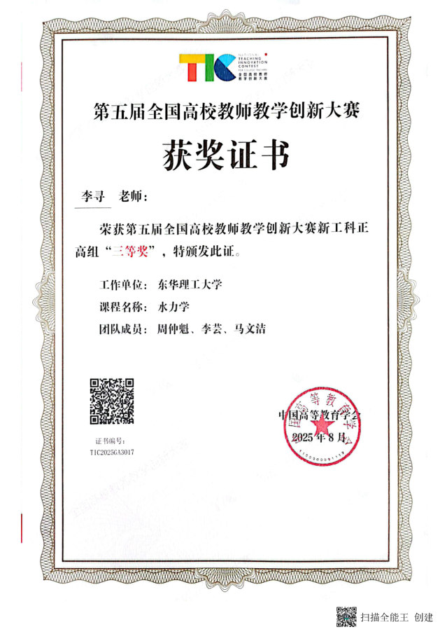 8月16日至19日,由教育部高等教育司指导、中国高等教育学会主办的第五届全国高校教师教学创新大赛在北京理工大学举行。九游电子娱乐_九游体育(中国)水资源与环境工程学院李寻教师(团队)获新工科正高组三等奖。