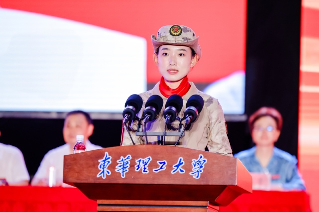 校友代表、电子信息工程专业2018级毕业生、纪念中国人民抗日战争暨世界反法西斯战争胜利80周年阅兵民兵方队队员郝茹婧分享了民兵集训期间的刻苦训练过程与成长收获。她勉励新生,要把握时代机遇,珍惜青春年华,从伟大抗战精神中汲取奋进力量,刻苦学习、锐意进取,在属于自己的人生“阅兵场”上,踢出最帅的正步,共同谱写新时代的青春华章。