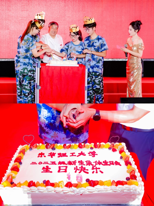 晚会尾声,还特别设置了新生集体生日会环节。在全场师生的祝福声中,新生代表们一同许愿、吹蜡烛,分享这份属于集体的甜蜜与感动。