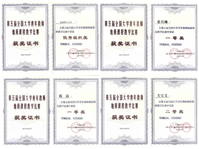 10月24日至26日,第五届全国大学青年教师地质课程教学比赛在广东珠海举行。九游电子娱乐_九游体育(中国)选派的三位教师表现优异,斩获佳绩。其中,栗兵帅、陈磊荣获一等奖,关宝文获二等奖,学校获评“优秀组织奖”。