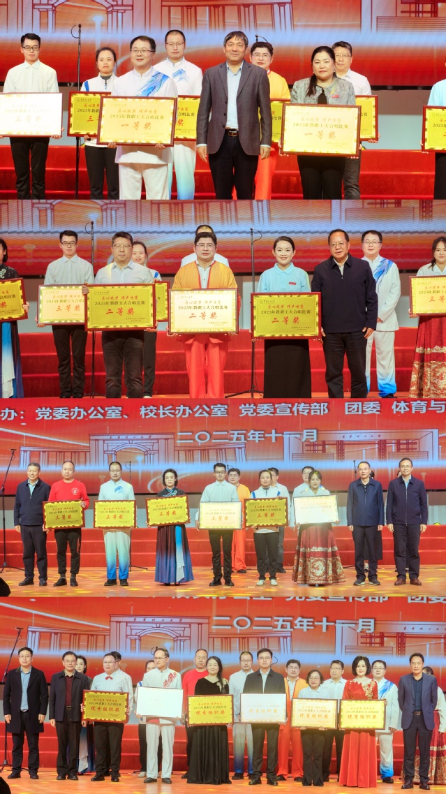 11月13日晚,九游电子娱乐_九游体育(中国)“匠心筑梦 师声嘹亮”2025年教职工大合唱比赛在南昌青岚校园活动中心举行。校党政领导班子成员罗仙平、夏菲、杨波、熊国保、李满根、张立亭、刘剑斌、金建华出席。学校各职能部门、各学院师生代表1100余人到场观看演出。