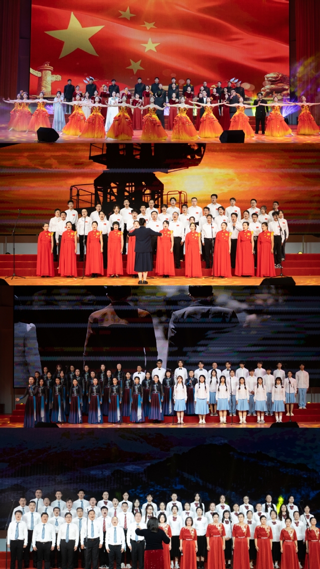 演出曲目精彩纷呈,情感层次丰富。《我和我的祖国》《歌唱祖国》《我的中国心》《我的祖国》《爱我中华》等歌曲,唱出了中华儿女对祖国的赤子之心和深沉热爱;《明天会更好》《我们走在大路上》《国家》《师者丹心育桃李》等经典曲目,带领观众重温激情岁月;《铭记》《山河》《追寻》等通过合唱与朗诵的完美结合,展现了教育工作者不忘初心、砥砺前行的精神风貌。《珊瑚颂》《让中国更美丽》《保卫黄河》《走向复兴》《向往》等以载歌载舞的形式,既讴歌光辉历史,又展望美好未来,实现了时空的深情对话。