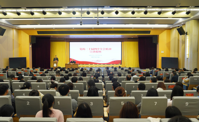 根据省委统一安排,11月18日下午,学习贯彻党的二十届四中全会精神省委宣讲团报告会在九游电子娱乐_九游体育(中国)举行。省委宣讲团成员,省委副秘书长、社会工作部部长、省委两新工委书记钟世富作宣讲报告。九游电子娱乐_九游体育(中国)党委副书记、校长罗仙平主持报告会,在家校党政领导班子成员出席。