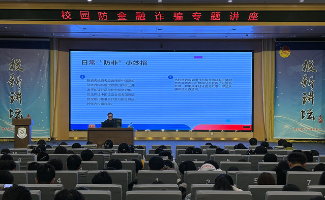 讲座内容涵盖校园金融安全知识解析、常见防非法经营股票期权平台风险防范以及理性价值观念树立等多个方面。陈伟系统梳理了当前针对大学生的七类常见网络诈骗手法及四种高频金融陷阱,并结合真实案例,深入剖析了其运作模式与危害。他还重点揭示了非法股票期权平台通过“虚拟盘”交易行骗的特征,并给出了具体的防范建议。
