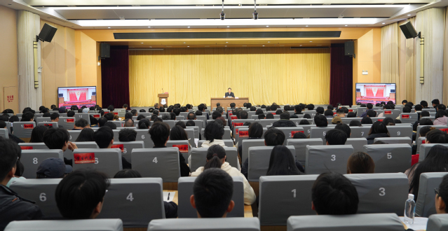 庄兆林结合当前面临的国内外发展形势,深刻阐述党的二十届四中全会的重大意义、精神实质和实践要求。他指出,把全会擘画的宏伟蓝图变为美好现实、实现第二个百年奋斗目标,需要青年一代共同奋斗。希望同学们树立报国强国大志向,勇担使命责任,抢抓时代机遇,努力做现代化建设的奋进者、开拓者、奉献者;涵养向上向善正能量,自觉践行社会主义核心价值观,争当“大写”的青年;练就成长成才真本领,主动到条件艰苦的基层、经济建设的一线、项目攻关的前沿磨砺锻炼,实现人生价值;争当创新创造生力军,为强国建设、民族复兴伟业贡献青春力量。他强调,学校要牢牢把握教育的政治属性、人民属性、战略属性,高质量推进“大思政课”改革创新,优化学科生态和人才培养体系,营造尊师重教良好氛围,推动高校党建和事业发展深度融合。