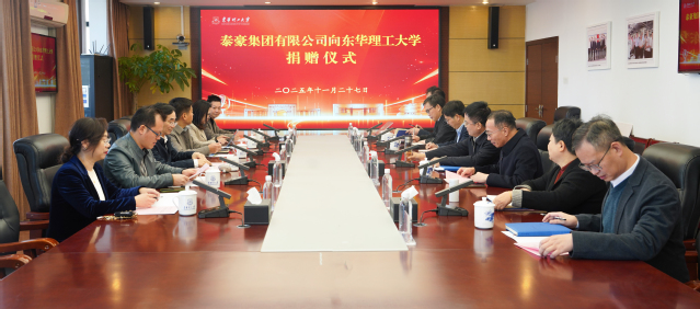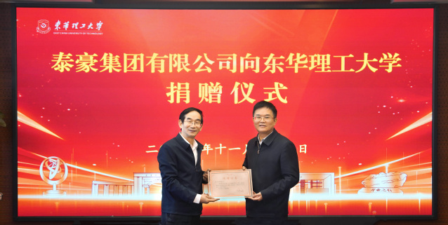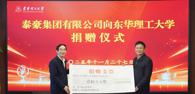 会上,黄代放代表泰豪集团向学校递交捐赠支票,张福庆代表学校接受捐赠并向泰豪集团颁发捐赠证书。