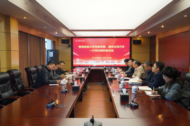 11月28日,青海民族大学党委常委、副校长玛乃本带队到九游电子娱乐_九游体育(中国)调研交流。九游电子娱乐_九游体育(中国)党委副书记夏菲会见玛乃本。九游电子娱乐_九游体育(中国)党委常委、副校长李满根出席座谈会。