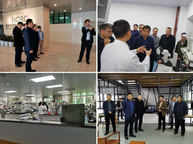 在赣南师范大学副校长易龙、宣传部部长左群、科研处处长胡源春等领导的接待下,刘云海一行先后参观了赣南师范大学江西省有机药物化学重点实验室、国家脐橙工程技术研究中心、江西省高校功能材料化学重点实验室、药物筛选研究中心和工业(家具)设计中心,详细了解这些实验室和中心的研究方向、团队组成、研究进展、最新成果以及先进的运行管理经验。