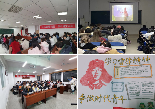 “人的生命是有限的,可是为人民服务是无限的,我要把有限的生命,投入到无限的为人民服务之中去。”为了让学生了解社会主义建设时期的历史背景,体悟共产党人为人民服务的初心使命,艺术学院把党史学习与学雷锋精神结合起来,开展“学百年党史励初心,传雷锋精神担使命”主题团日活动,地球科学学院组织“弘扬雷锋精神,喜迎建党百年”宣讲活动,围绕新时代如何学习四史与雷锋精神展开宣讲,帮助学生们坚定永远跟党走的理想信念,鼓起迈进新征程、奋进新时代的精神气;地球物理与测控技术学院、测绘工程学院开展了雷锋日记朗读会、雷锋故事会、续写雷锋日记、学雷锋知识问答等系列活动,核科学与工程学院、师范学院开展“学习雷锋榜样,争做时代青年”手抄报活动,让“为人民服务”的雷锋形象深入人心;为引导学生向身边典型看齐,理学院开展了“学雷锋、讲党史、话初心——与江西省岗位学雷锋岗位标兵李荣同面对面分享会”主题团日活动,从都市到农村,从校园到村落,李荣同老师像一头不知疲倦的“孺子牛”,数十年如一日地默默耕耘在扶贫、教育一线,“现如今的中国,是一代代有理想信念的共产党人带领我们不断奋斗创造出来的,作为青年大学生应该知党史感党恩,了解党的奋斗经历,从中汲取青年成长智慧,把青春投入到为人民服务的伟大事业中去,为祖国的建设奉献自己的力量。”李荣同老师深情寄语。