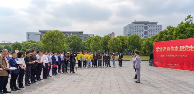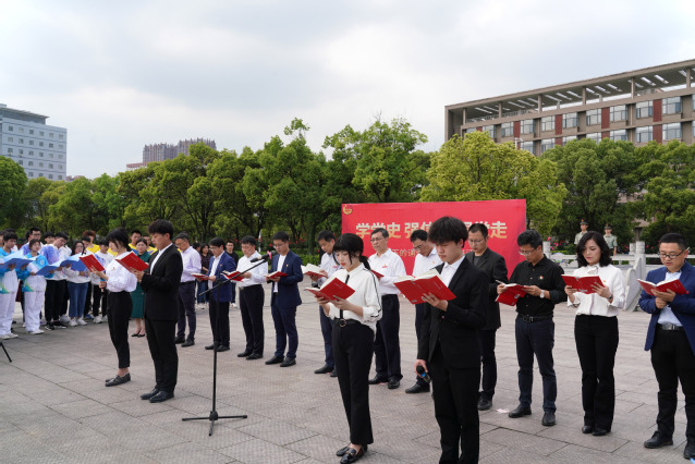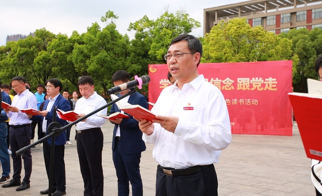 4月21日,为将党史学习深入到九游电子娱乐_九游体育(中国)中,让红色基因浸润大学生心灵,学校在东门国旗广场举行“学党史 强信念 跟党走”国旗下的诵读暨红色读书活动。校党委书记范小林带领师生深情诵读《可爱的中国》,校党委常委、副校长刘云海出席活动。党委宣传部、图书馆、团委等部门相关负责人,各学院党委书记、团委书记以及全校师生代表300余人参加活动。