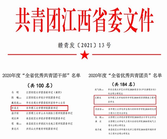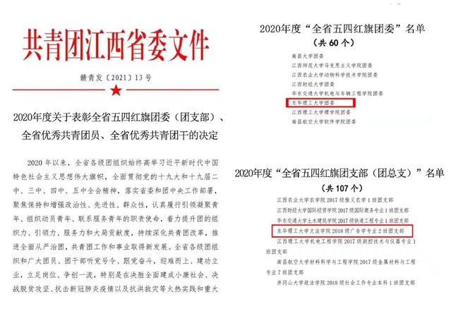 五四青年节前夕,共青团江西省委发文,对2020年度全省共青团先进典型进行表彰,我校获奖项目丰硕、获奖数量再创新高。