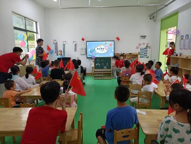 开设支教课堂,宣讲红色精神。水资源与环境工程学院在南昌蛟桥镇双岭小学开设支教课堂,组织开展红色主题教育活动。大学生志愿服务者与小朋友一起学唱《我和我的祖国》,向小朋友讲述“八一南昌起义”的故事,引导小朋友要铭记历史,懂得美好生活来之不易,更要缅怀革命先烈,发扬艰苦奋斗、不怕牺牲的精神。校团委赴崇仁县徐家村志愿服务队在徐家小学开设彩虹支教课堂,在“童心跟党走,巧手绘党旗”主题课上,大学生志愿者引导小朋友们充分发挥创造力,用手中的画笔描绘鲜艳的党旗,表达对党的热爱之情。理学院志愿者为金溪县中学初二学生上了一堂生动的党课。党课从1921年中国共产党成立的时代背景展开,一直到中国共产党领导中国人民走进新时代取得的辉煌成就,一组组照片让人惊艳,一个个故事令人感动。“感谢大哥哥的精彩讲述,中国共产党披荆斩棘,冲破重重困难才创造出的一次次辉煌成就。我要好好学习,长大争取成为一名光荣的共产党员,为人民、为祖国多做贡献!”学生孙丽坚定地讲道。校团委赴资溪志愿服务队开展“同升一面国旗,同看一场庆典,同唱一首红歌,同玩一场红色游戏”等“四个一”红色教育活动。在大学生志愿者的带领下,小朋友们积极参与,学习氛围热烈而庄严。通过一系列的活动,在润物无声中将红色基因根植于小朋友心中。