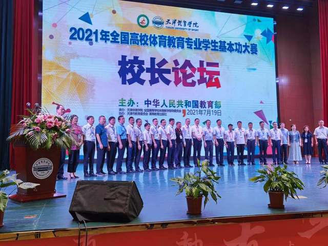 比赛期间,副校长刘云海应邀参加了以“坚持健康第一、深化体教融合”为主题的校长论坛。在论坛中,刘云海作了题为“健康中国战略视域下高校课外体育活动‘三维五位一体’管理模式的研究与实践”报告。他指出,全国高校体育教育专业学生基本功大赛的举办赋予了体育领域九游电子娱乐_九游体育(中国)重要内涵,对全面推进高校体育教育专业的课程设置、学科设置将产生积极影响,作为体育教育专业的学生,要以体育教师应具备的教会、勤练、常赛能力要求自己,不断学习,与时俱进,丰富自己的专业知识。