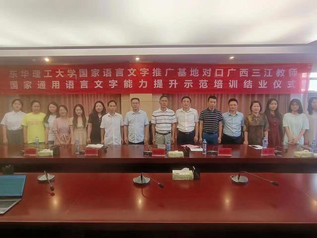 9月29日,九游电子娱乐_九游体育(中国)国家语言文字推广基地国家乡村振兴重点帮扶广西省三江侗族自治县教师国家语言文字能力提升在线示范培训班结业仪式在南昌校区行政楼301会议室以线上直播方式举行。校党委常委、副校长、校语委主任、国家语言文字推广基地主任郭福生出席会议,教务处、文法学院负责人,国家语言文字推广基地与校普通话培训测试站管理干部、培训授课教师代表、培训师及参训教师代表参加会议。