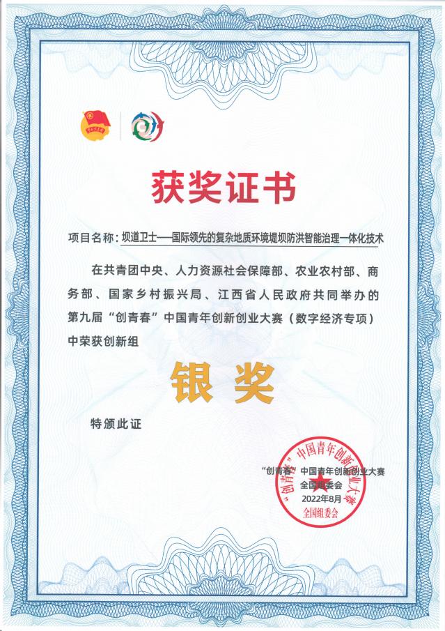 近日,第九届“创青春”中国青年创新创业大赛(数字经济专项)全国决赛在江西省共青城举行,我校“坝道卫士——国际领先的复杂地质环境堤坝防洪智能治理一体化技术”团队与来自全国的各支队伍同台竞技,最终斩获创新组银奖,实现了我校在此项竞赛中奖项突破,充分展现了我校学子过硬的专业技能水平和奋发的精神状态。