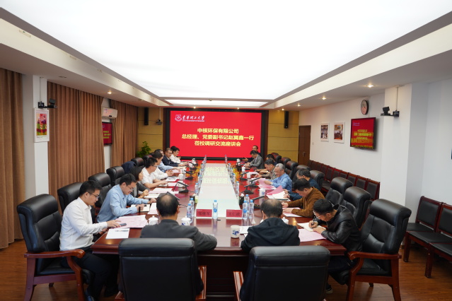 10月31日下午,中核环保有限公司总经理、党委副书记赵翼鑫一行来校调研交流。学校党委书记张福庆亲切会见了来宾,并就深化合作交换了意见。中核投资党委委员、中核同创董事长时运福,校党委副书记、校长孙占学,校党委常委、副校长刘云海出席座谈会。会议由副校长汤彬主持。