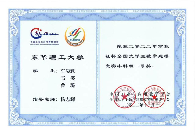 近日,2022年全国大学生数学建模竞赛成绩公布,我校共斩获全国一等奖1项、全国二等奖1项、省一等奖7项、省二等奖3项、省三等奖6项。