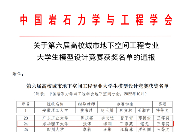 近日,由中国岩石力学与工程学会主办,西安理工大学等单位承办的第六届高校城市地下空间工程专业青年教师讲课大赛和大学生模型竞赛在陕西西安举行(线上)。我校师生代表队荣获全国高校城市地下空间工程专业青年教师讲课大赛一等奖和大学生模型设计竞赛三等奖的佳绩,实现了我校在此项高层次高水平模型竞赛中的历史突破。