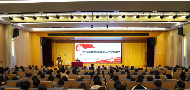 党的二十大胜利召开以来,学校及时组织、迅速行动,多措并举推动党的二十大精神落地生根。一是精心组织“学”。学校第一时间组织收听收看党的二十大开幕盛况,召开党委常委会(扩大会议)传达学习党的二十大精神,及时制定并印发学习方案,购买学习资料,开辟学习专栏,通过省委宣讲团成员刘文华、校党委书记张福庆、校长孙占学等领导干部带头学、基层组织创新学、“花式”宣讲沉浸学、加强阐释深入学等多渠道、多形式、全方位营造学习贯彻党的二十大精神的浓厚氛围。二是学深悟透“研”。围绕党的二十大精神,校党委以上率下开展专题研究,撰写刊发理论文章,形成研究成果,深化思想认识。我校思想政治理论课教师围绕党的二十大精神撰写理论文章共计26篇。三是创新深入“讲”。我校选派优秀教师、思政课教师、专家学者、学生骨干参加全省教育系统师生巡讲团,组建包含校党委常委、各基层党委(直属党总支)书记、思政课教师代表、离退休人员代表、江西青马团成员、学生团支部书记在内的各级各类宣讲团,进行全方位、立体式宣讲。四是聚焦发展“干”。学校对标党的二十大报告提出的目标任务和重大战略,聚焦国家需求和江西社会发展,细化举措,狠抓落实,推动党的二十大精神在学校落地见效,着力建设“行业领先、国内一流、国际知名”特色高水平大学。
