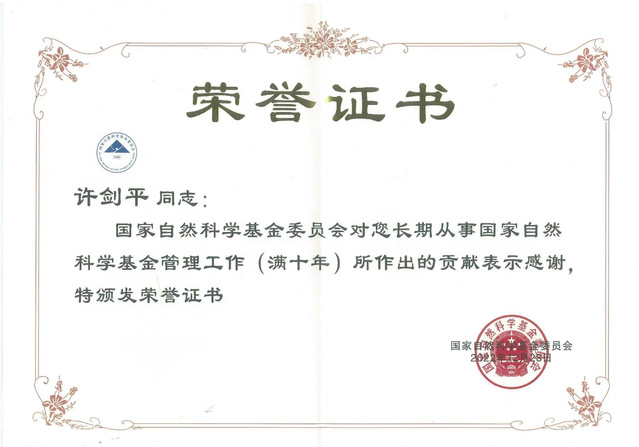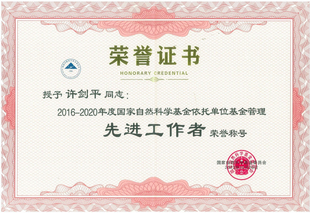 近日,国家自然科学基金委员会在北京召开2022年度国家自然科学基金管理工作会议暨表彰大会,我校教师许剑平荣获“国家自然科学基金依托单位基金管理先进工作者”(全省共2名)和“长期从事国家自然科学基金管理工作(满十年)”称号。