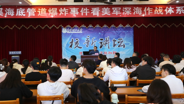 为提升青年学子国防意识和军事素养,近日,我校邀请中国人民大学法学博士、国防大学法学博士后、军事科学院研究员况腊生做客核新讲坛,以“从北溪海底管道爆炸事件看美军深海作战体系的发展”为主题开展讲座。全校300余名师生到场聆听。