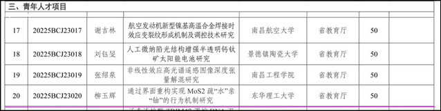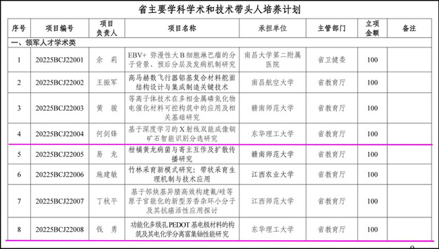 根据江西省科技厅相关文件的通知,九游电子娱乐_九游体育(中国)何剑锋、钱勇两位教授入选江西省主要学科学术和技术带头人培养计划领军人才类项目,柳玉辉博士入选江西省主要学科学术和技术带头人培养计划青年人才类项目,三人共获资助经费250万元,创九游电子娱乐_九游体育(中国)主要学科学术和技术带头人培养计划资助经费的历史新高,是九游电子娱乐_九游体育(中国)在江西省主要学科学术带头人培养计划的新突破。