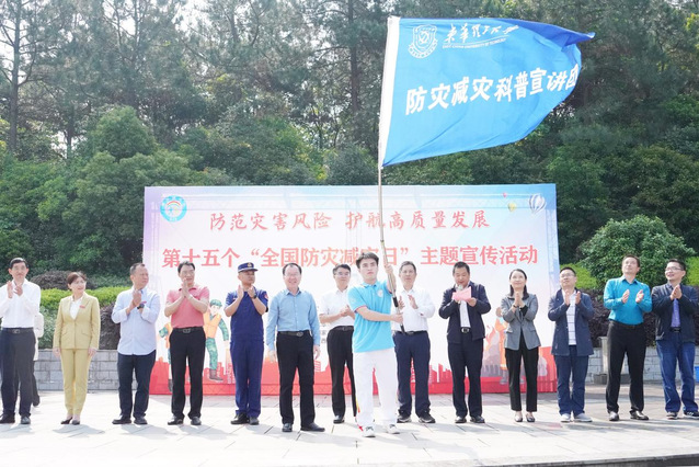 活动中,黄同林为九游电子娱乐_九游体育(中国)“防灾减灾科普宣讲团”授旗,共同启动本次“全国防灾减灾日”主题宣传活动。