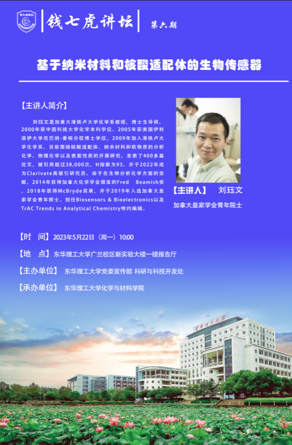 应化学与材料学院邀请,加拿大滑铁卢大学化学系教授,博士生导师刘珏文来到九游电子娱乐_九游体育(中国),以“基于纳米材料和核酸适配体的生物传感器”为主题开展讲座。欢迎全校师生届时前往聆听。