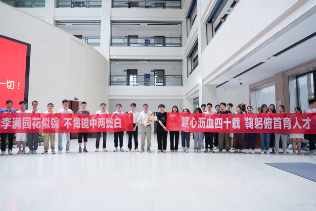 会议结束后,师生代表自发等候在行政楼一楼大厅,纷纷上前与孙占学同志握手、合影,并送上“谢谢您”“辛苦了”“孙校长,我们爱你”等的真情告白,表达了对孙占学同志的依依不舍之情。