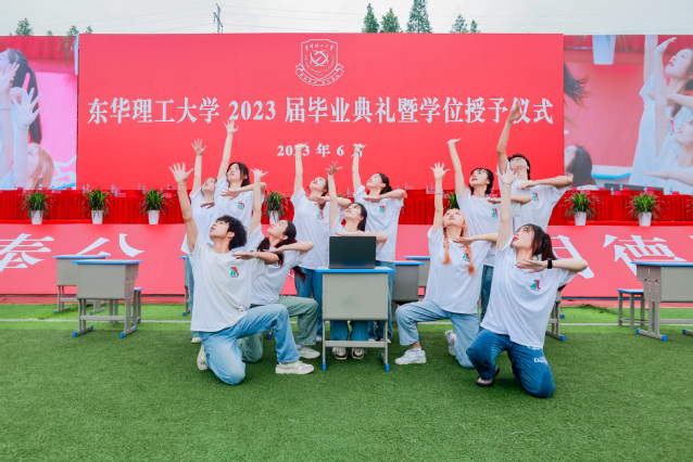 典礼上,毕业生代表向学校2022年度模范教师代表献花。典礼还特别设置了预热舞蹈、演唱环节、毕业生核军工宣誓仪式与朗诵环节,现场气氛热烈而庄重。(文/刘宇翔 图/刘宇翔 大学生传媒中心)