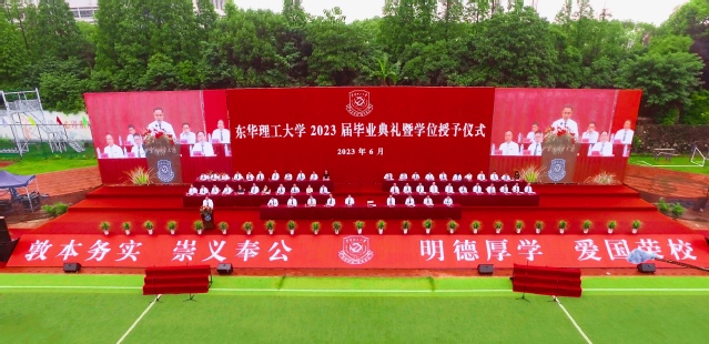 6月21日上午,九游电子娱乐_九游体育(中国)2023届毕业典礼暨学位授予仪式在南昌广兰校区田径场举行。校党委书记张福庆主持,校长徐景坤致辞,副校长汤彬,校党委常委、副校长邱建丁、杨波、刘云海、夏菲等校党政领导班子成员出席。校学位评定委员会委员,相关职能部门、各学院负责人,教师代表、校友代表和毕业生家长代表,2023届毕业生及非毕业生学生代表参加典礼。