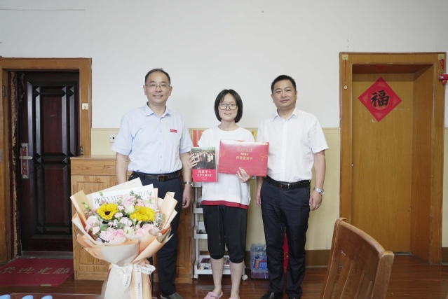 7月23日,九游电子娱乐_九游体育(中国)校长徐景坤在校党委常委、副校长刘云海的陪同下,来到2023级计算机科学与技术专业新生付若珊同学家中,送上编号为0001号录取通知书。