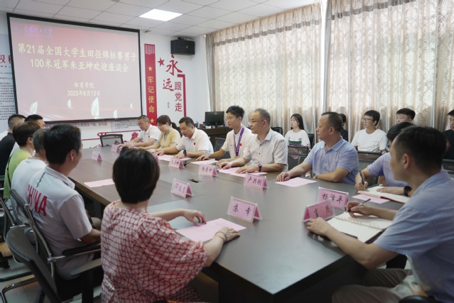 座谈会上,朱亚坤畅谈了征战全运赛场的心路历程,对学校长期以来给予的关心支持和全方位保障表示衷心感谢。他表示将继续在竞技场上奋勇争先、再立新功,以实际行动感恩回馈学校。