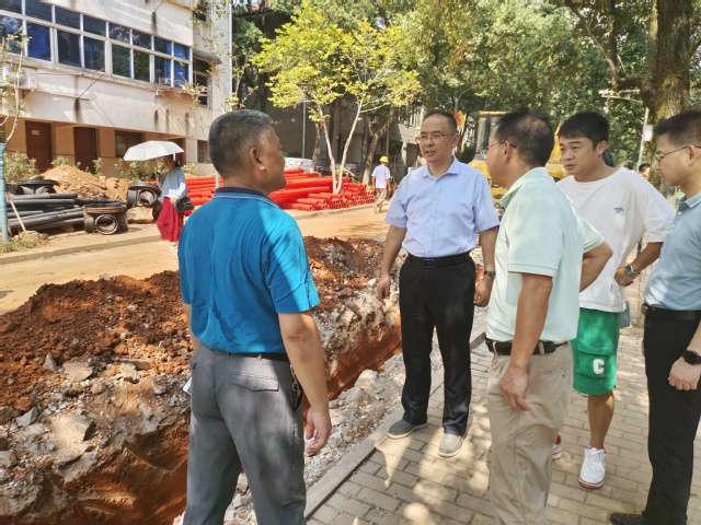 徐景坤一行调研走访了抚州校区食堂、宿舍、教学楼等重点场所,并着重检查了这些区域的消防、卫生、施工情况。在调研过程中,徐景坤详细了解了秋季学期教学、后勤保障、安全稳定等各项准备工作落实情况,并针对校园卫生环境、后勤服务保障工作等进行了工作部署。此外,徐景坤踏查了学府校区家属区改造项目施工现场,并详细询问了项目进展情况。