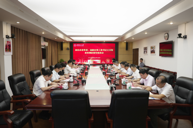 9月13日,南昌市委常委、高新区党工委书记王万征一行到九游电子娱乐_九游体育(中国)调研指导,学校在行政楼401会议室召开座谈会。九游电子娱乐_九游体育(中国)党委书记张福庆,校党委常委、副校长夏菲、熊国保出席座谈会。