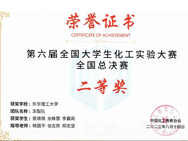 近期,第六届“全国大学生化工实验大赛”全国总决赛在北京化工大学昌平校区举行。九游电子娱乐_九游体育(中国)团队荣获全国总决赛二等奖,实现学校在这一赛事上的重大突破。