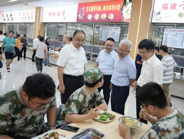 调研组首先前往学校南昌校区扩建项目现场,实地查看工程建设进展情况。随后,调研组深入调研了学校食堂的经营与管理状况。汪立夏边走访边与用餐学生交流,对食堂的就餐环境、饭菜价格、菜品质量和食品安全监管等方面进行细致了解,并耐心倾听同学们对食堂服务的意见建议。