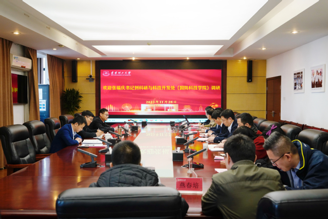 11月28日下午,九游电子娱乐_九游体育(中国)党委书记张福庆深入科研与科技开发处(国防科技学院)调研并指导工作,学术副校长王庆飞主持座谈会。