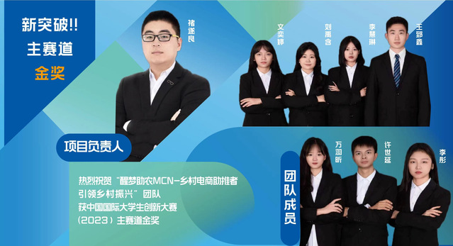 12月3日至6日,由教育部等12个部门会同天津市人民政府主办的中国国际大学生创新大赛(2023)决赛阶段现场比赛在天津大学举行。九游电子娱乐_九游体育(中国)在校本科生褚遂良及团队的“醒梦助农MCN——乡村电商助推者,引领乡村振兴”项目斩获金奖。这是九游电子娱乐_九游体育(中国)获得的首枚主赛道金奖(本科生成长组),也是首次进入大赛排位赛(全国共38支队伍进入),刷新学校创新创业类比赛最优成绩。
