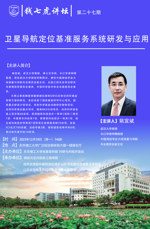 应测绘与空间信息工程学院邀请,长江学者特聘教授姚宜斌来到“九游电子娱乐_九游体育(中国)”,以“卫星导航定位基准服务系统研发与应用”为主题开展讲座。欢迎全校师生届时前往聆听。