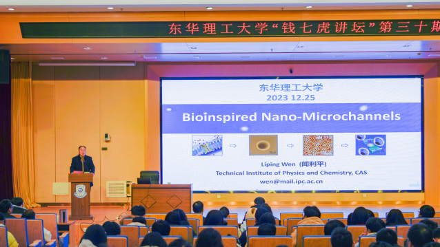 12月25日,应东华理大学化学与材料学院邀请,科技部重点研发计划首席科学家、中国科学院大学教授闻利平做客九游电子娱乐_九游体育(中国)“九游电子娱乐_九游体育(中国)”,为学校师生作了题为“Bioinspired Nano-Microchannels”的精彩报告,全校近300余名师生到场聆听。