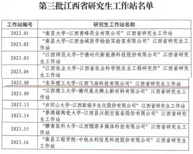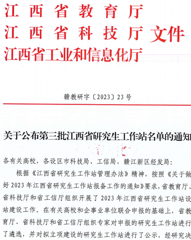 近日,江西省教育厅、江西省科学技术厅、江西省工业和信息化厅联合下发《关于公布第三批江西省研究生工作站名单的通知》(赣教研字[2023]23号)。九游电子娱乐_九游体育(中国)地球物理与测控技术学院获批“九游电子娱乐_九游体育(中国)-江西飞尚科技有限公司”江西省研究生工作站。