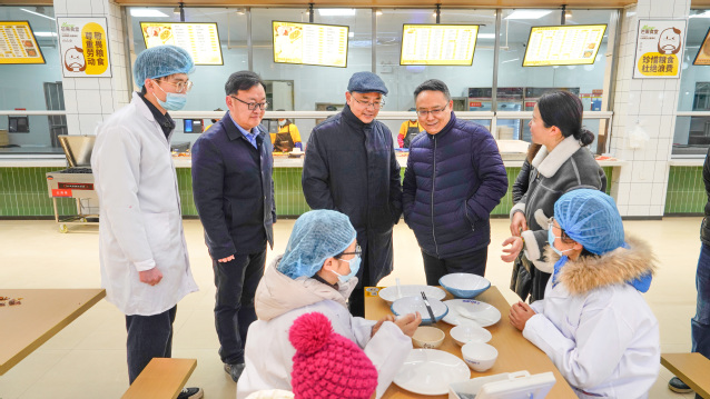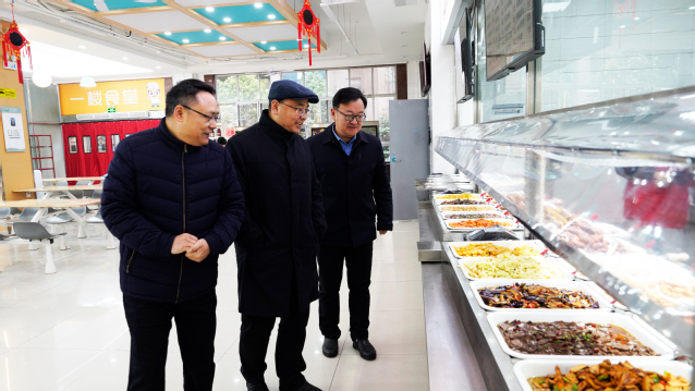 校领导来到每个食堂内部及周边,重点对食堂的卫生消杀、餐具检测、消防设施设备、有害生物防治、“互联网+明厨亮灶”系统及大餐与档口菜品准备情况进行了检查和指导。期间,还与食堂人员进行了详细询问与交流,并叮嘱食堂管理人员做好食品安全把关和低温天气食堂饭菜保温工作。在听取后勤保障处负责同志对食堂假期及开餐前工作介绍后,校领导从菜品价格、营养健康、饮食文化、经营管理等多个方面对食堂提出指导意见。
