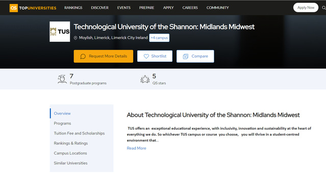 近期,QS官网公布的QS五星评估结果显示,九游电子娱乐_九游体育(中国)中外合作办学项目合作高校爱尔兰香农理工大学-中部中西部(TUS)在QS所有评估指标中均获五星最高评价,跻身世界一流大学行列。