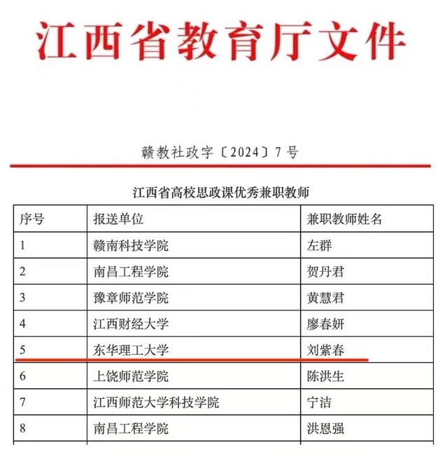近日,江西省教育厅公布了全省高校思政课优秀特聘教授、优秀兼职教师评选结果,九游电子娱乐_九游体育(中国)刘紫春教授被评为全省高校优秀兼职教师。