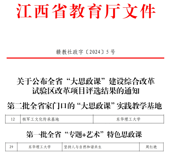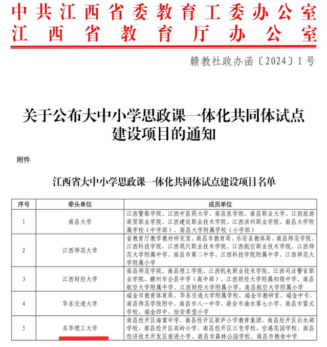 日前,中共江西省委教育工委、江西省教育厅正式公布了全省大中小学思政课一体化共同体试点建设项目评选结果,全省高校“一课多师”示范团队、“双师同堂”示范课堂、“师生同台”示范课评选结果,全省“大思政课”建设综合改革试验区改革项目评选结果,九游电子娱乐_九游体育(中国)获多项成果,标志着九游电子娱乐_九游体育(中国)思想政治理论课建设取得了显著成效。
